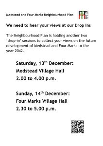 Medstead and Four Marks Neighbourhood Plan steering group are holding two drop-in sessions to consider your views on future developments.