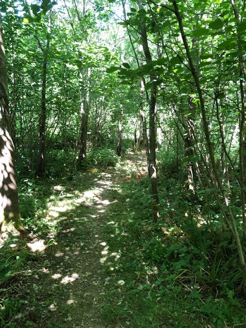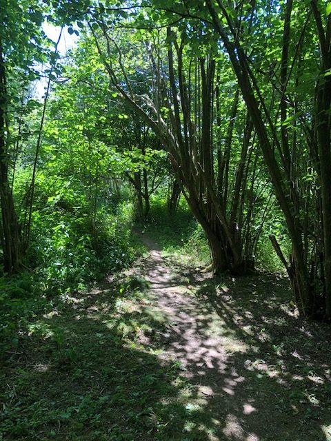 Unfortunately a number of trees have had to be felled due to Ash dieback, but an additional 30 trees have been planted throughout the wooded area to compensate. Daffodils peep through in the spring from its former identity as a fruit and nut orchard, with walnut, plum and pear trees providing fruit and nuts for wildlife. Dormice love the understorey, which is why when tree work is carried out, it is left. The logs provide a haven for bugs.